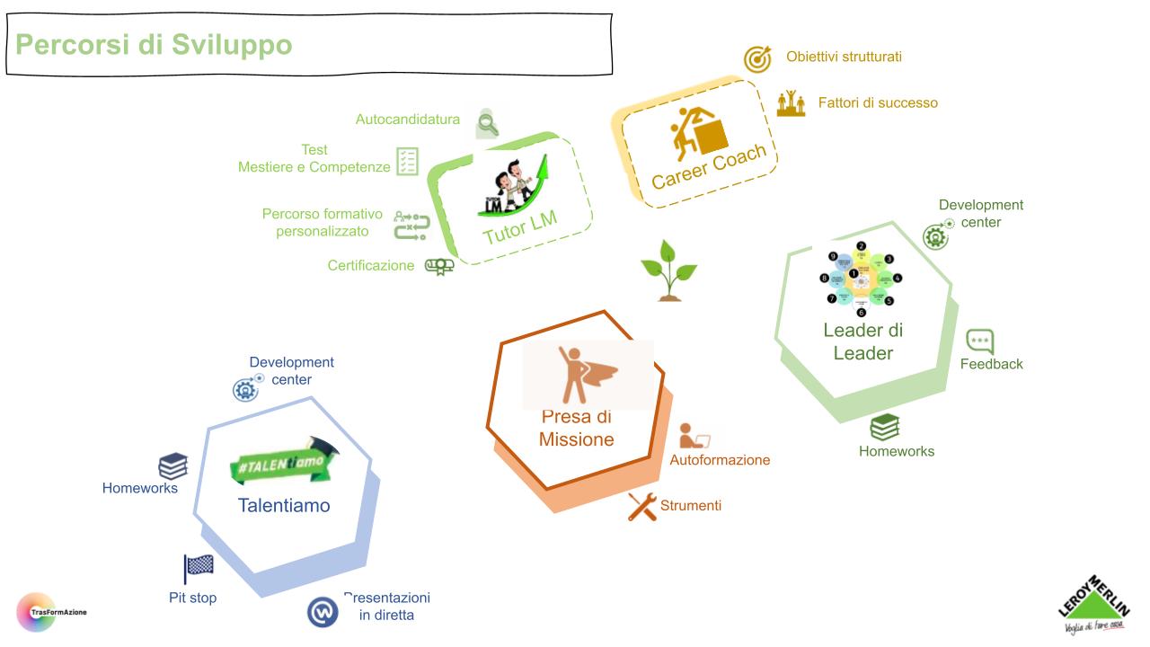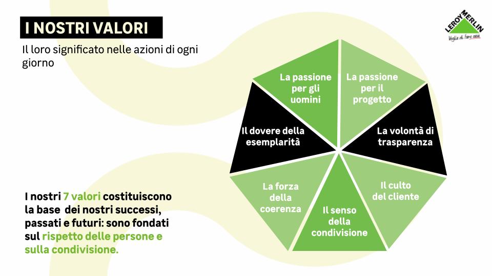 Vogliamo che ogni collaboratore di Leroy Merlin possa vivere un percorso di valutazione e sviluppo che lo metta al centro come persona e che favorisca la sua crescita. Alimentiamo la cultura del feedback come dono per lo sviluppo di sé e degli altri. La valutazione è al servizio dello sviluppo di ogni persona. Lo sviluppo personale fa crescere la performance di tutta l’azienda.