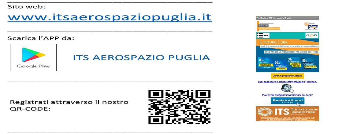 emails: segreteria@itsaerospaziopuglia.it – info@itsaerospaziopuglia.it