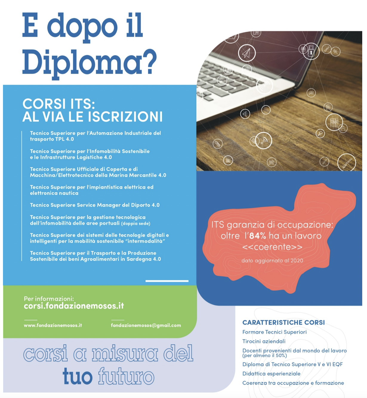 L’ITS - Fondazione "MO.SO.S." agisce nell'area tecnologica della Mobilità Sostenibile con particolare riferimento all'economia del mare in Sardegna negli ambiti: -della "Mobilità delle persone e delle merci" -della produzione e manutenzione di mezzi di trasporto e/o relative infrastrutture -della gestione infomobilità e infrastrutture logistiche; Gli Istituti Tecnici Superiori sono scuole ad alta specializzazione tecnologica, del Ministero della Pubblica Istruzione, nate per rispondere alla domande delle aziende