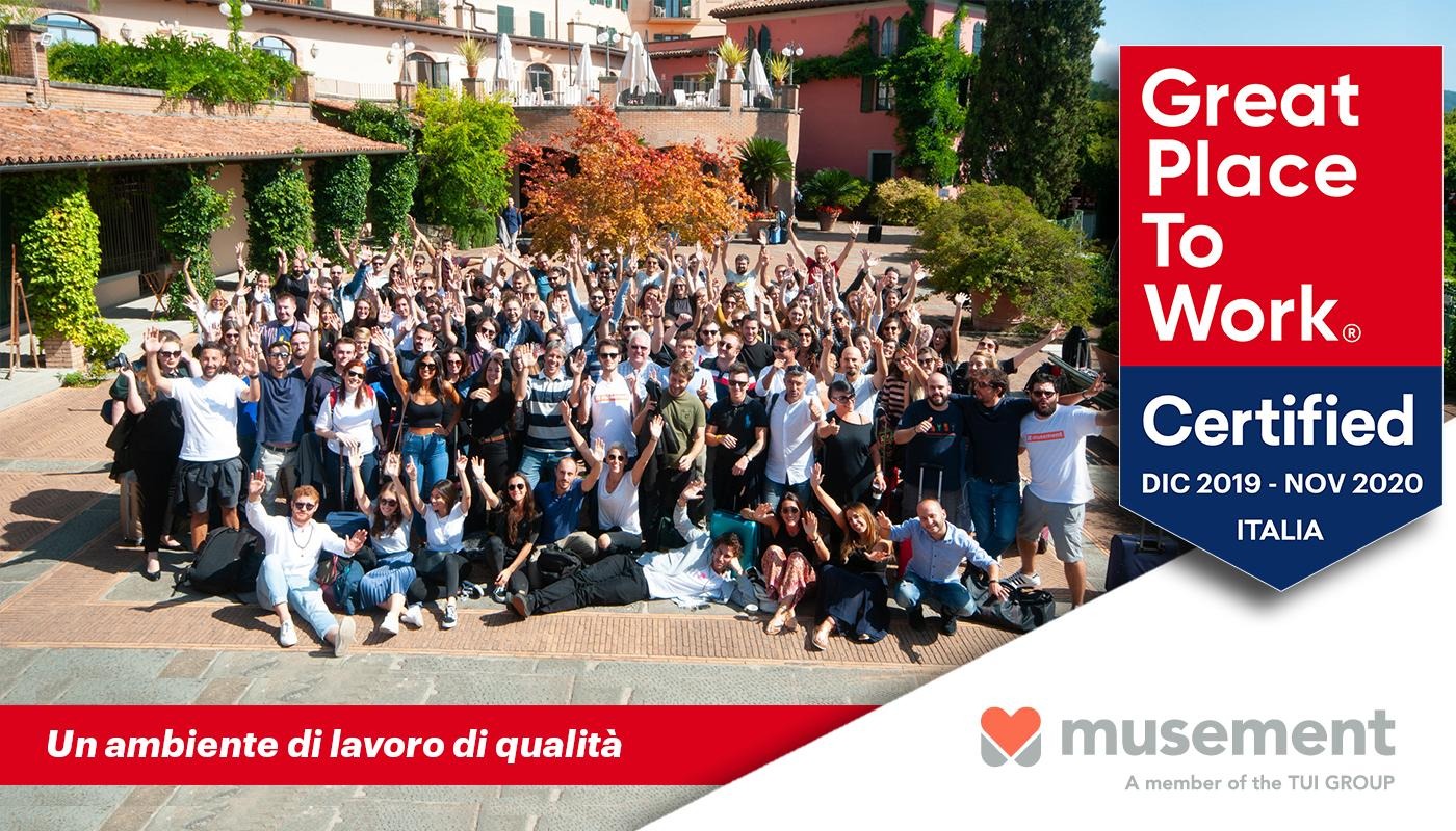 Musement fa parte della community internazionale di aziende certificate Great Place to Work®. e accede automaticamente alle procedure per la definizione della rinomata classifica annuale Best Workplaces Italia.
